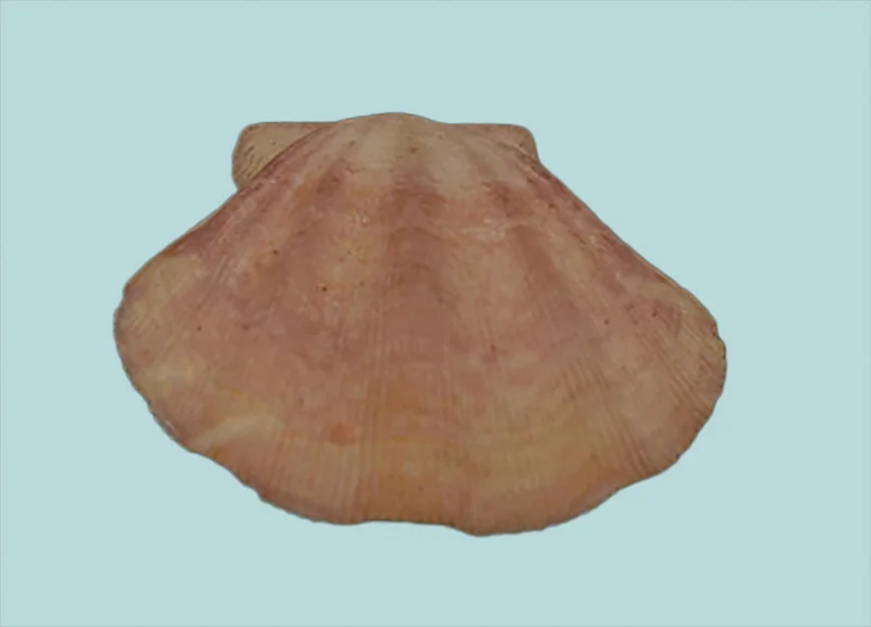 A deep-sea scallop species known for its delicate, finely ribbed valves and symmetrical form. Typically pale pink to cream in color, this species is found by Trawling of 75-100 meters. Valued by collectors for its elegant shape and clean preservation.